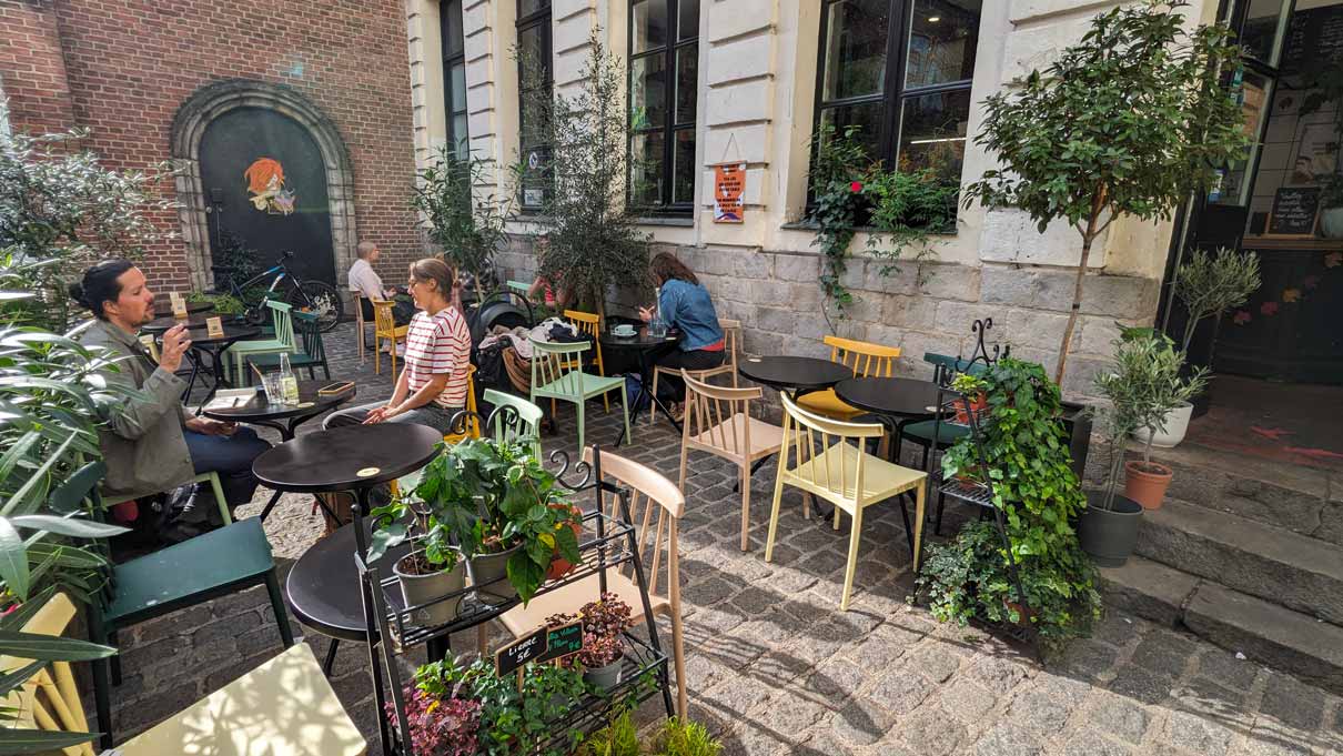À la fois café, bar, restaurant, jardinerie et boutique, la Wilderie est un endroit où tu peux aussi bien venir quelques minutes boire un café et/ou acheter une plante que rester toute la journée et déguster ton p’tit dej, ton déjeuner ou ton goûter. Le menu change un mercredi sur deux mais basiquement il y aura toujours une proposition végétarienne, un casse-croûte, une salade et aussi en hiver une petite soupe. Dans tous les cas, tu y trouveras toujours des propositions sans gluten et végan dans leurs gâteaux et boissons (et sans gluten sur certains plats aussi).