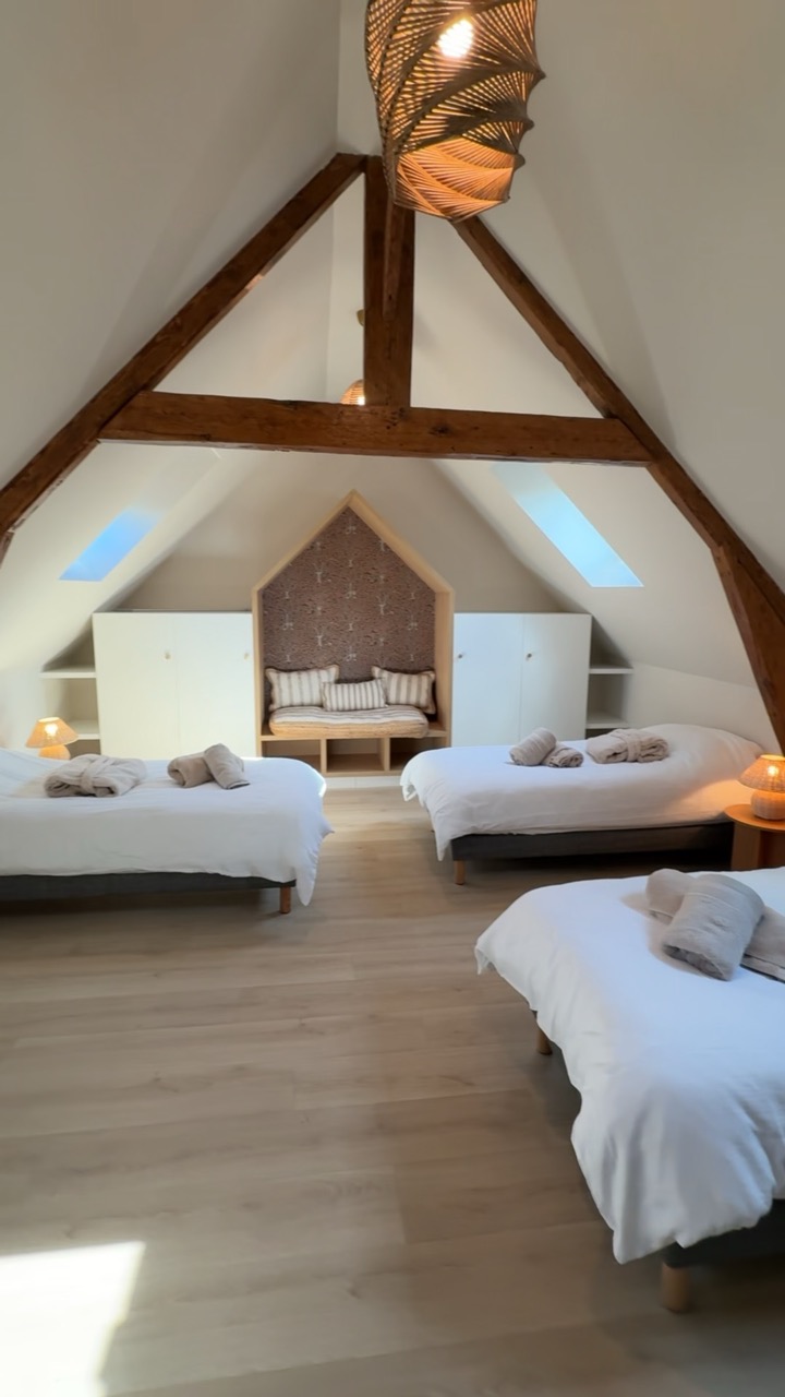 Si tu veux vraiment couper du quotidien, direction Le Domaine Blackwood à Rinxent, juste à côté de Marquise et à 1h30 de Lille. Cette longère en pierre de 1851, entièrement rénovée, dégage un charme fou. À l’intérieur, l’ambiance est cosy, moderne et chaleureuse, parfaite pour une location de vacances qui change des classiques.