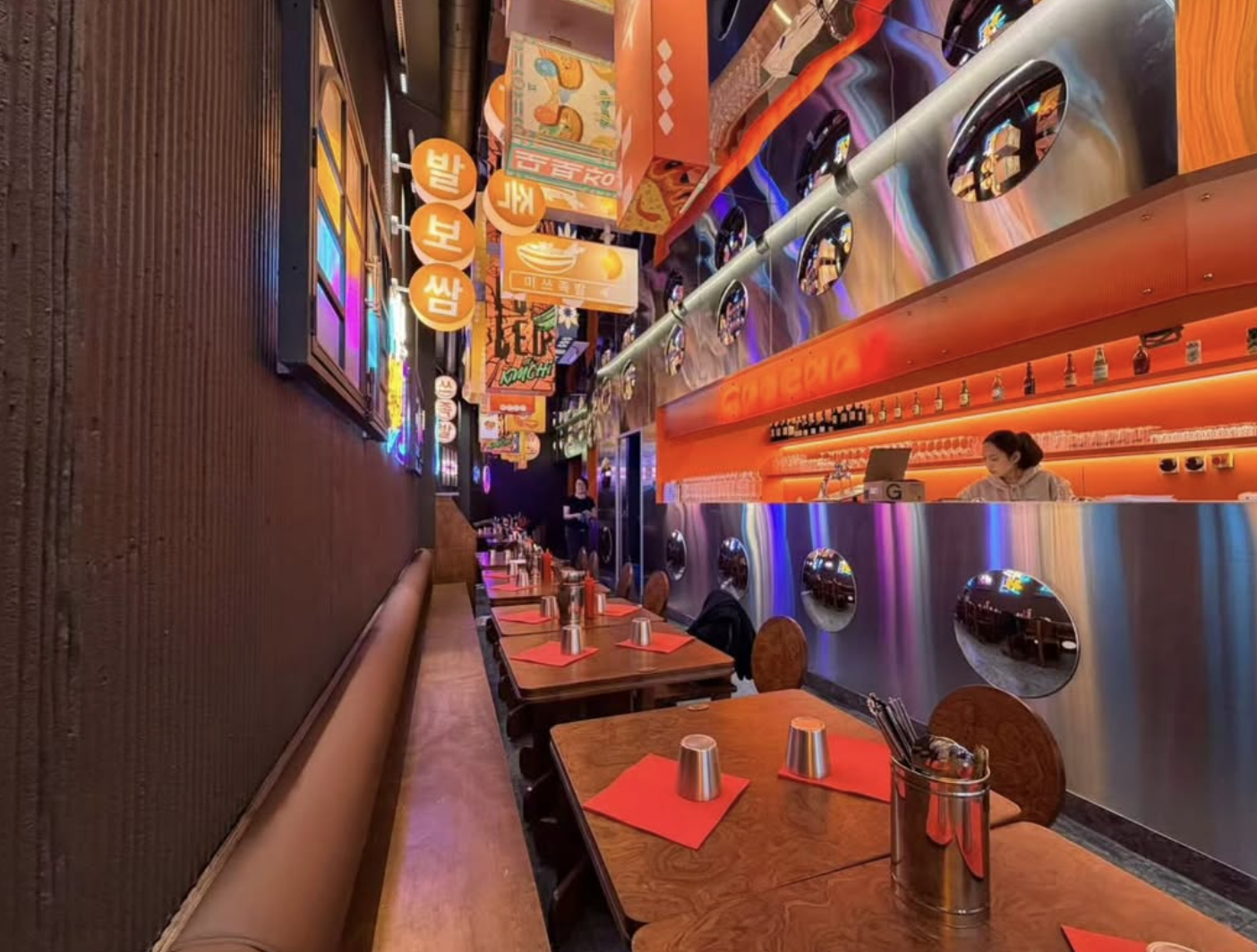 Avec des plats cheesy à base de fromage dakgalbi, katsu, mandu et rabokki (des classiques de la rue Myeong-dong, à Séoul), tout ça avec du poulet coréen frit au miel. Tu trouveras aussi des bibimbap ou le Tteokbokki, un plat iconique, à base de galettes courtes de riz, souvent vendu par les “pojangmacha”, des marchands ambulants ou fixes de rue.